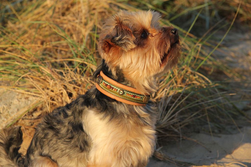 "Kleine" Fleur - mit einem Halsband mit Fettlederadapter zum Mitwachsen